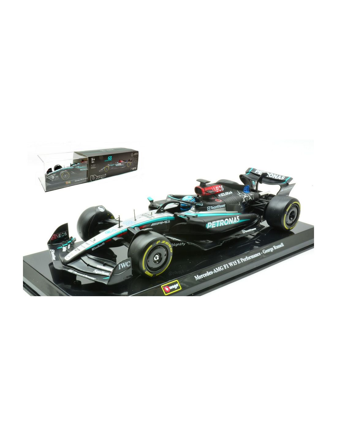 BBURAGO BU28063R MERCEDES AMG W15 N.63 2024 GEROGE RUSSELL SIGNATURE 1:24 Modellino