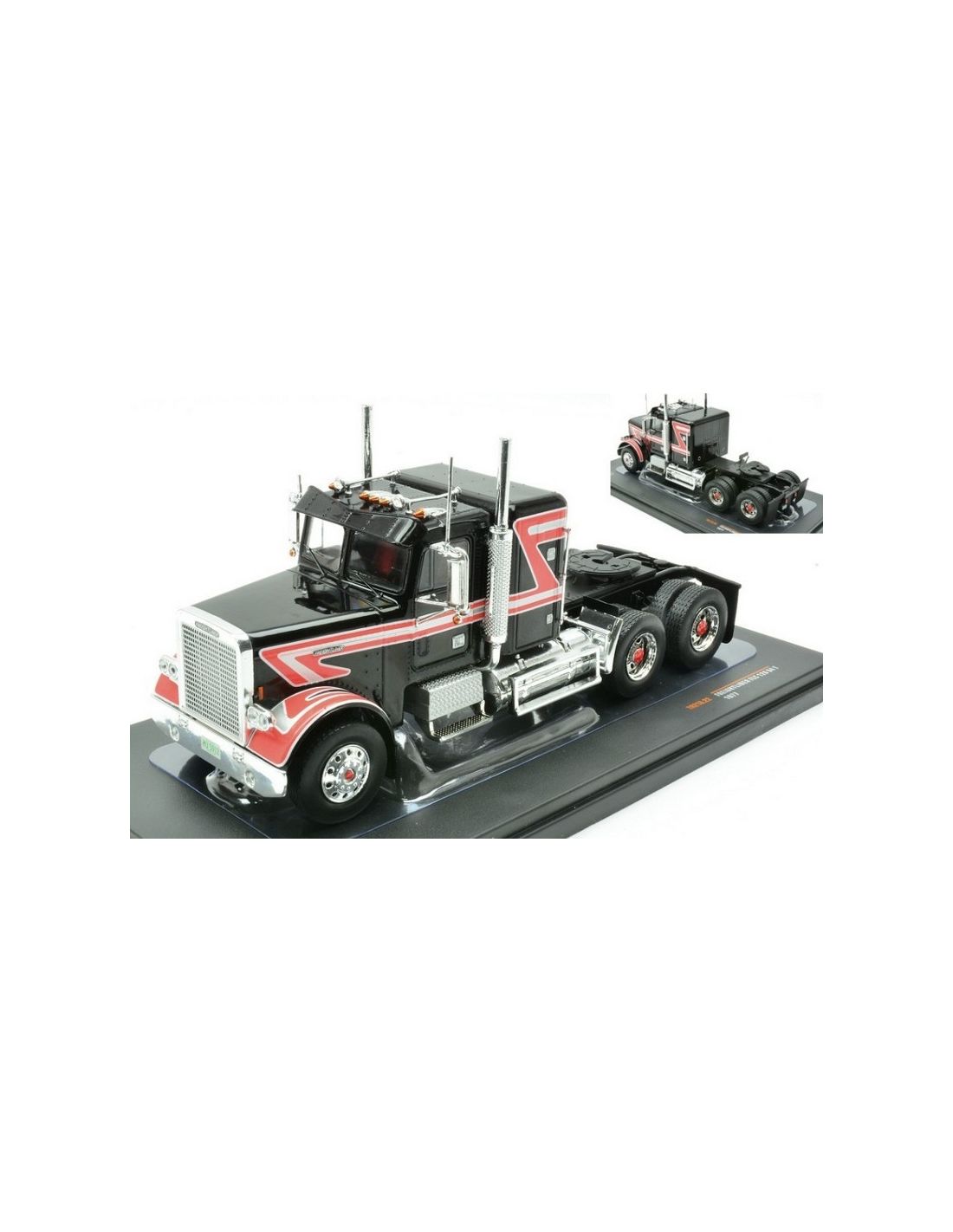 IXO MODEL TR218 FREIGHTLINER FLC 120 64 T 1977 BLACK/RED 1:43
