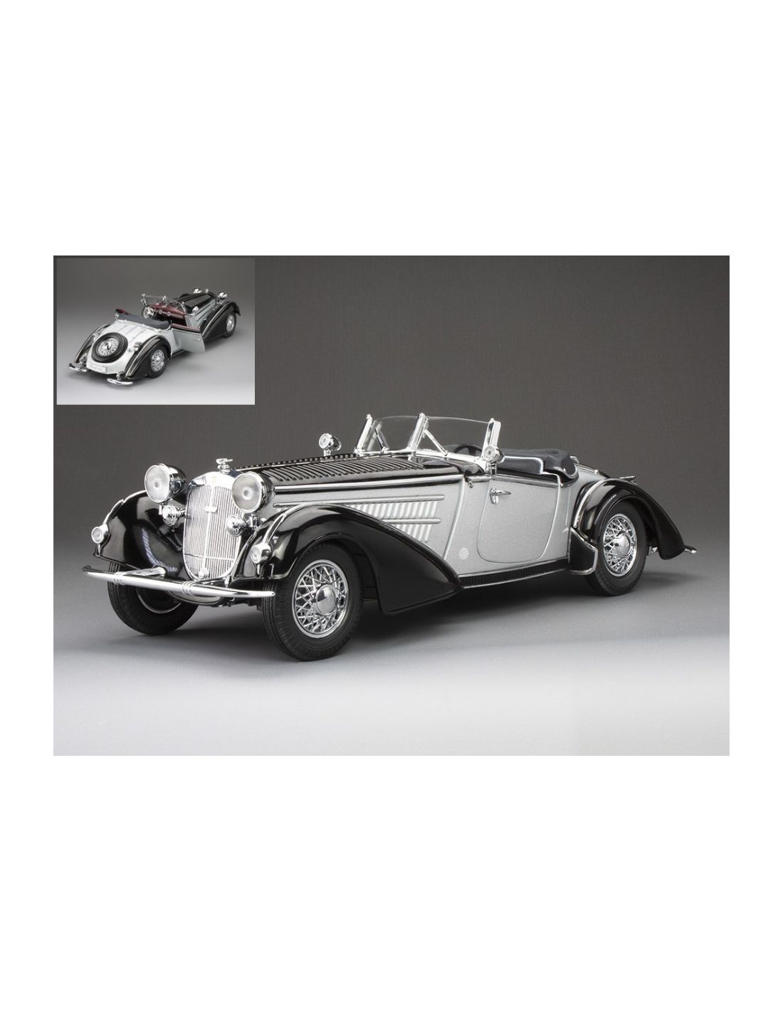SUNSTAR SS2410 HORCH 855 SPECIAL ROADSTER 1939 BLACK/SILVER 1:18 Modellino