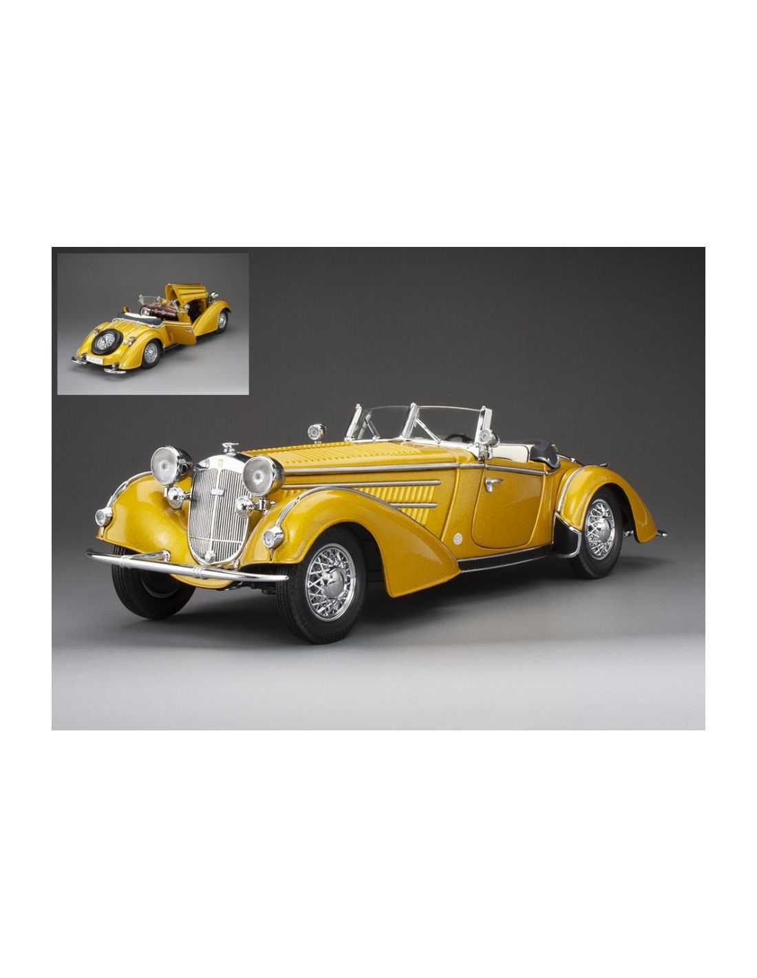 SUNSTAR SS2411 HORCH 855 SPECIAL ROADSTER 1939 GOLD 1:18 Modellino