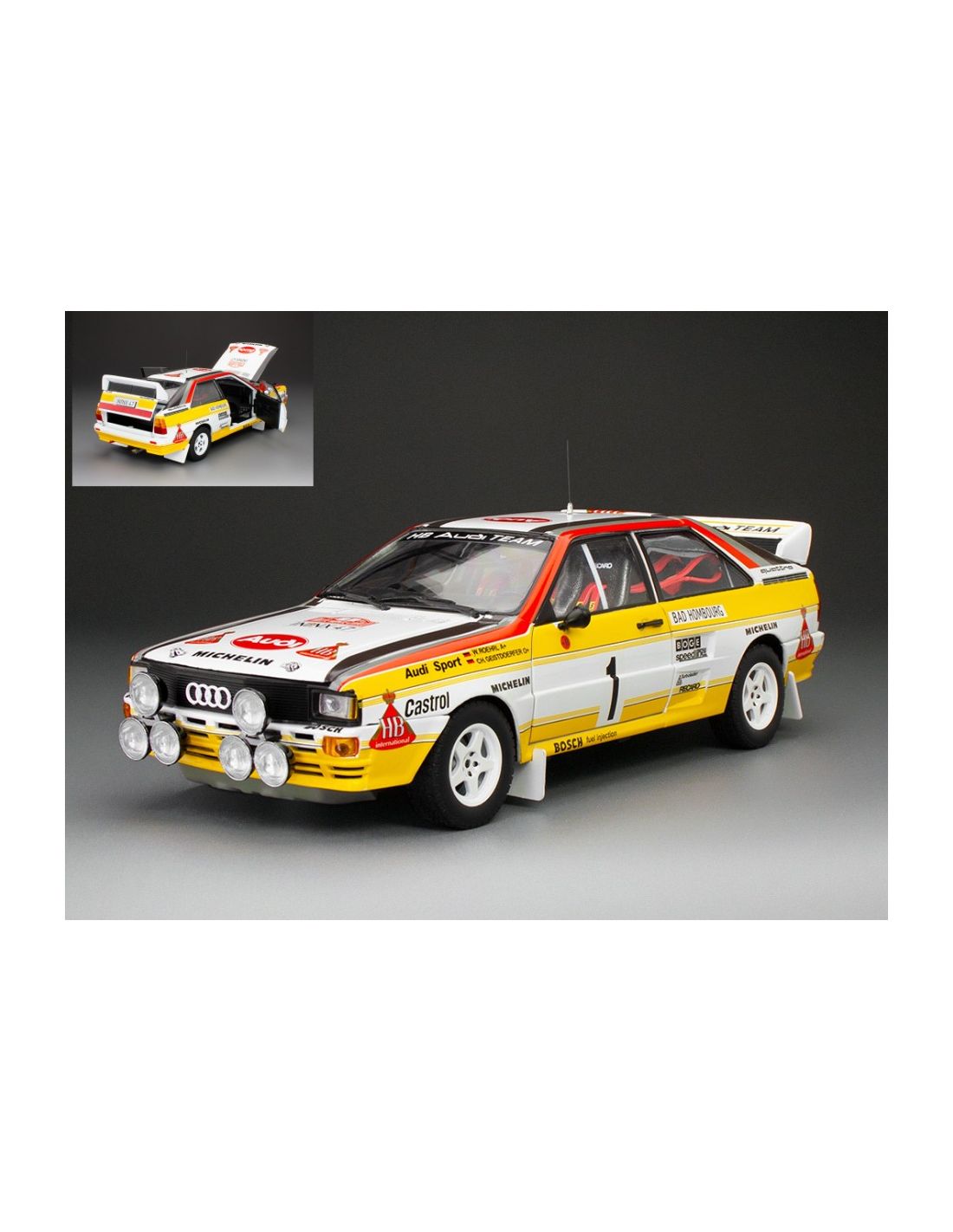 SUNSTAR SS4258 AUDI QUATTRO A2 N.1 WINNER RALLY MONTE CARLO 1984 ROHRL-GEISTDORFER 1:18 Modellino