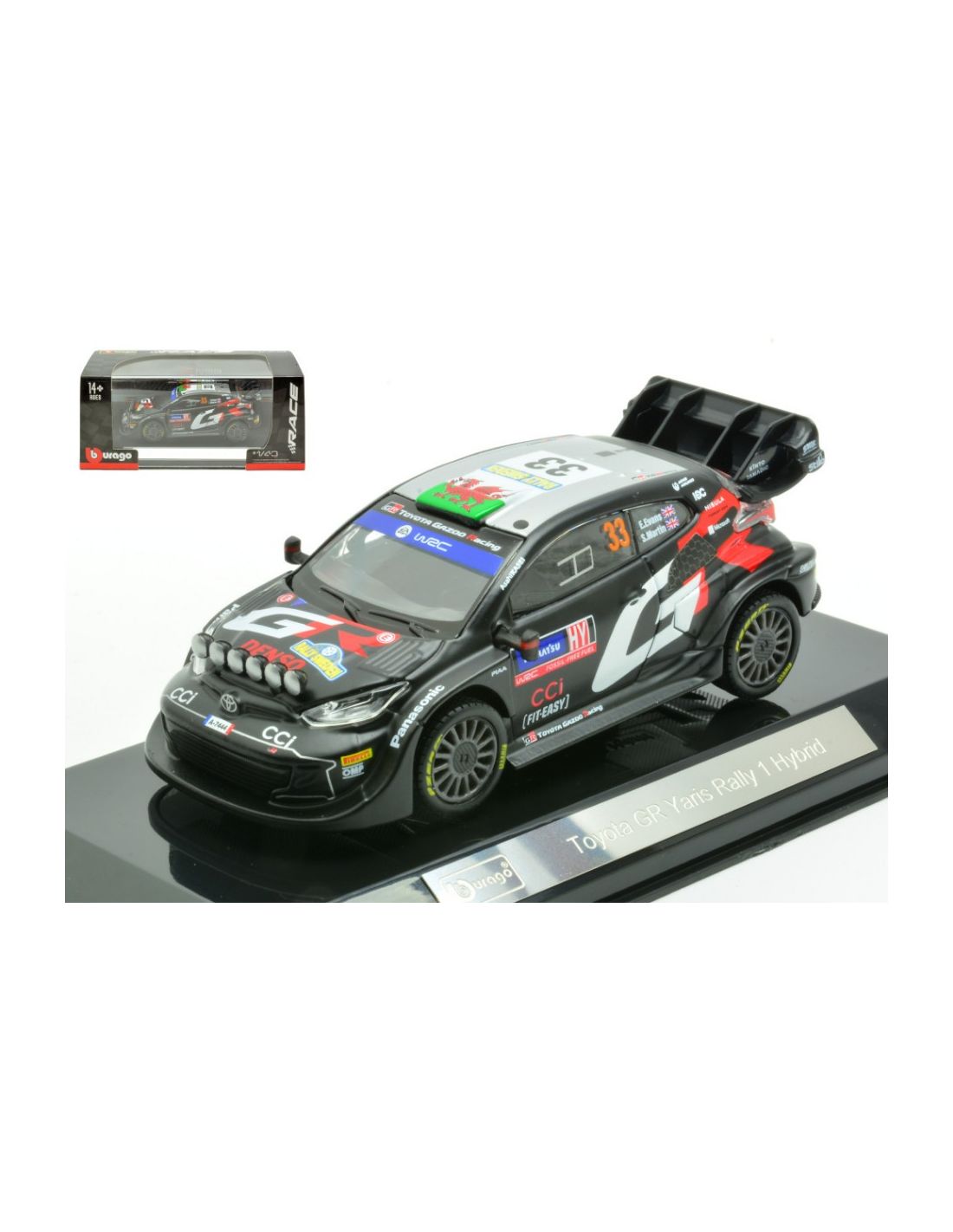 BBURAGO BU38316 TOYOTA YARIS WRC RALLY 1 HYBRID N.33 2024 EVANS-MARTIN 1:43 Modellino