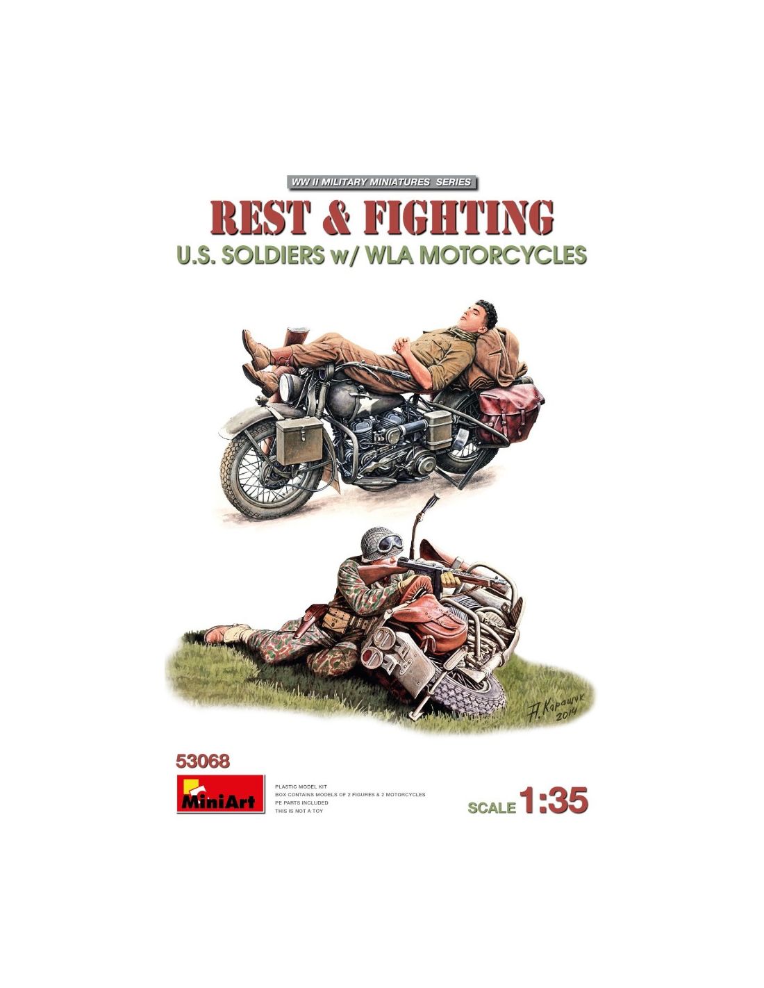MINIART MIN53068 REST & FIGHTING U.S. SOLDIERS W/WLA MOTORCYCLES KIT 1:35 Modellino